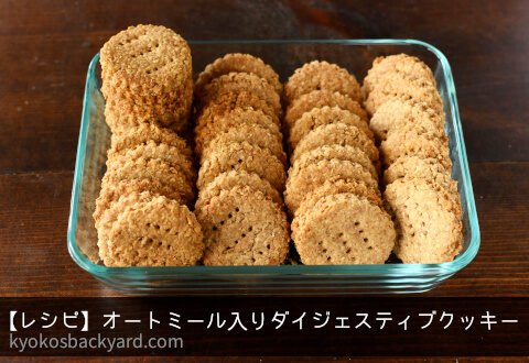 全粒粉を使って作るのが一般的ですが、オートミールを入れてさらに食感をアップしてみました。甘さ控えめなのと、食感の良さで、ついつい手が伸びてしまう危険なおやつです。