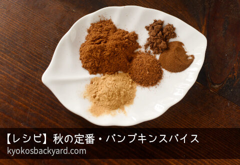 ★パンプキンスパイスは、パンプキンパイやパンプキンブレッドに使われるスパイスのことを指すため、「パンプキン」は入りません。