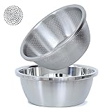 ★Stainless Steel Microporous Colander, 5QT Large Capacity with Mixing Bowl